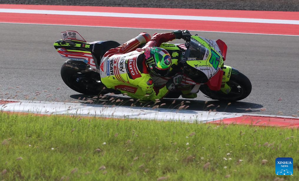 Pertamina Enduro VR46 Racing Team's Italian rider Franco Morbidelli competes in the MotoGP race at the Pertamina Grand Prix of Indonesia 2025, held at the Pertamina Mandalika Circuit in Lombok Island, Indonesia, on Oct. 5, 2025. (Xinhua/Cen Yunpeng)