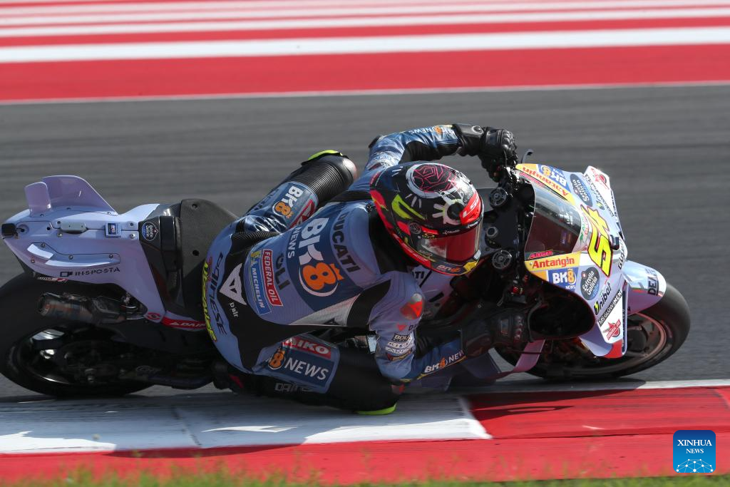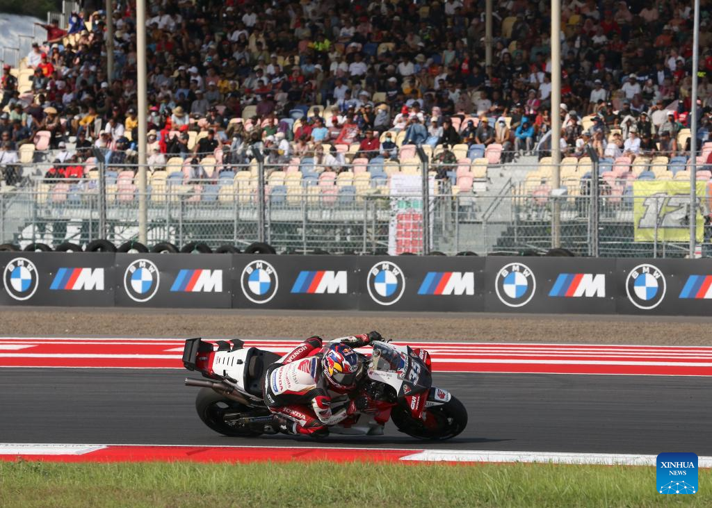 IDEMITSU Honda LCR's Thai rider Somkiat Chantra competes in the MotoGP race at the Pertamina Grand Prix of Indonesia 2025, held at the Pertamina Mandalika Circuit in Lombok Island, Indonesia, on Oct. 5, 2025. (Xinhua/Cen Yunpeng)