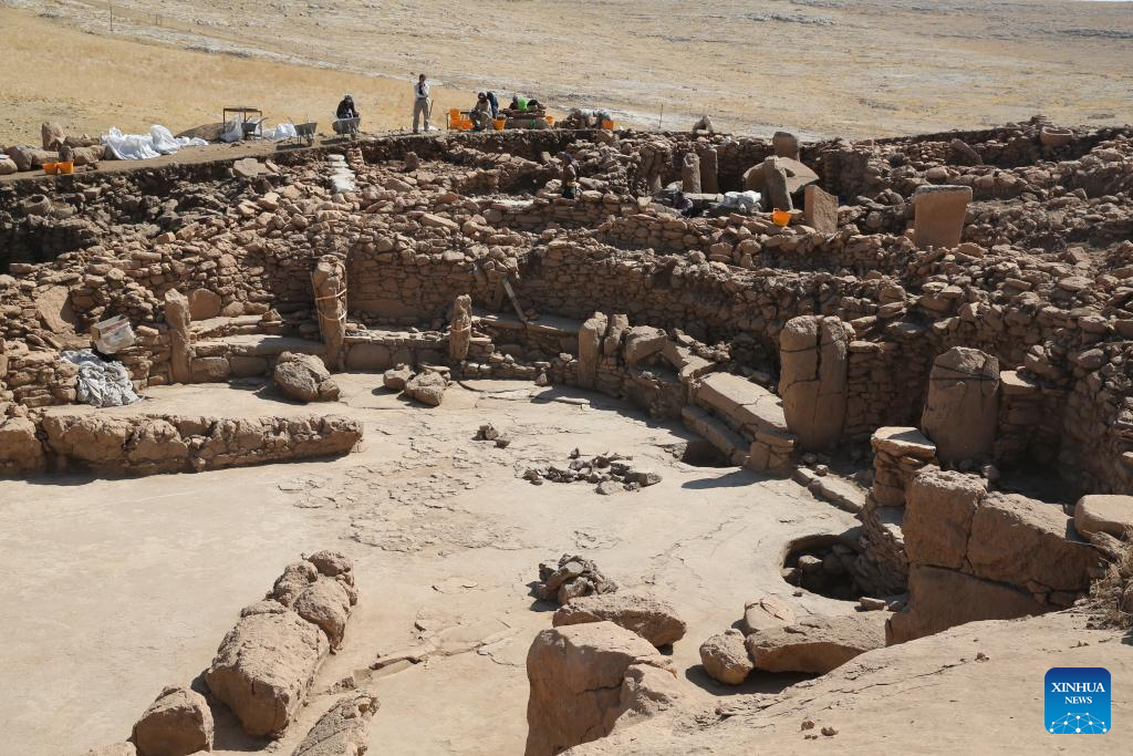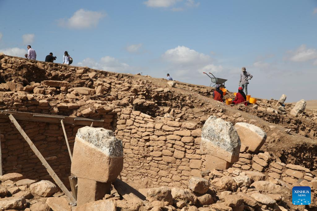 ANKARA, Oct. 6 (Xinhua) -- A T-shaped pillar carved with a human face has been unearthed for the first time during recent excavations at the Karahantepe archaeological site in southeastern Türkiye, a cabinet minister announced on Monday.