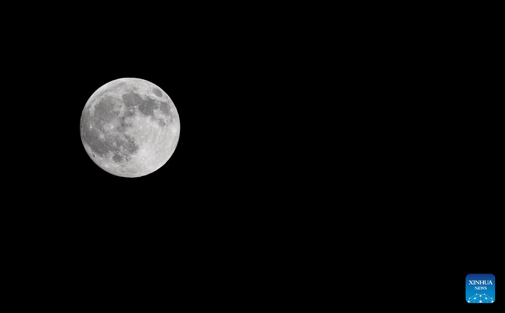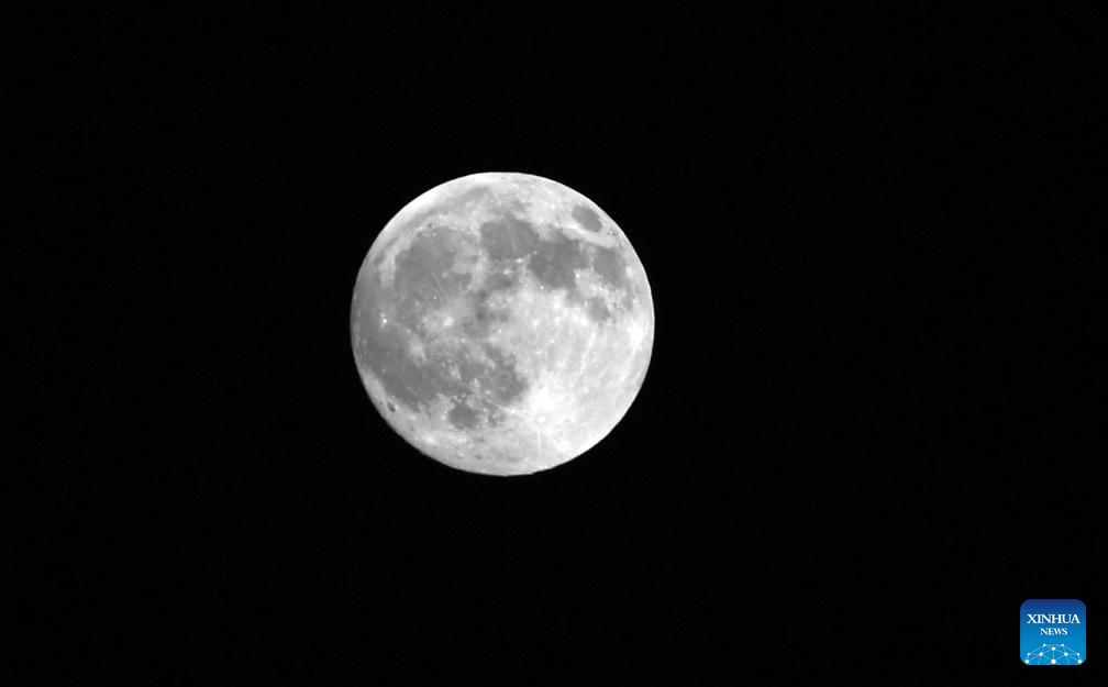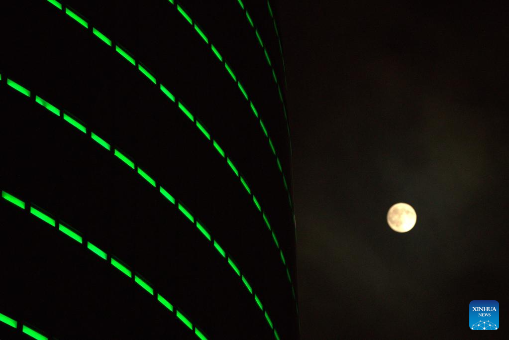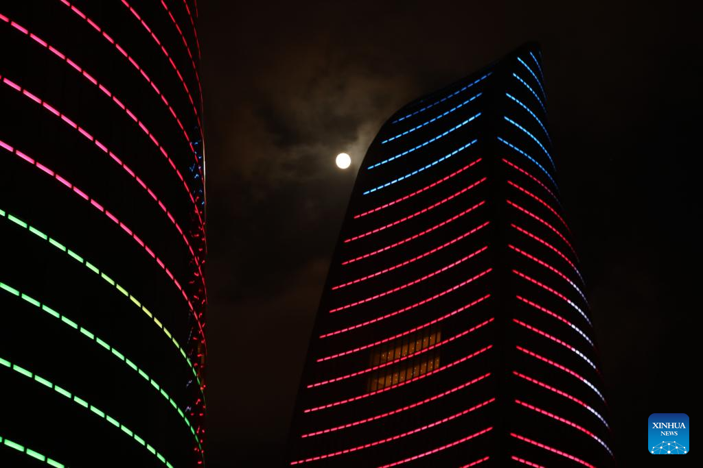 A full moon is seen in the sky over Baku, Azerbaijan, Oct. 6, 2025. (Xinhua/Chen Junfeng)