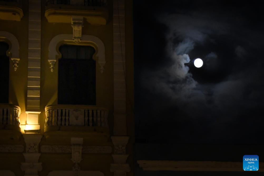 A full moon is seen in the night sky of Havana, capital of Cuba, on Oct. 6, 2025. (Photo by Joaquin Hernandez/Xinhua)