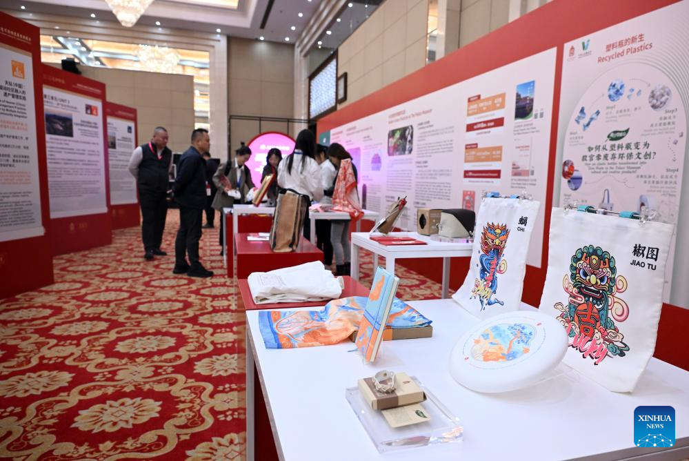 This photo shows the cultural and creative products of the Palace Museum at the site of the opening ceremony of the 7th Taihe Forum in Beijing, capital of China, Oct. 11, 2025. The 7th Taihe Forum, organized by the Palace Museum and the Forbidden City Cultural Heritage Conservation Foundation, was held in Beijing on Saturday.