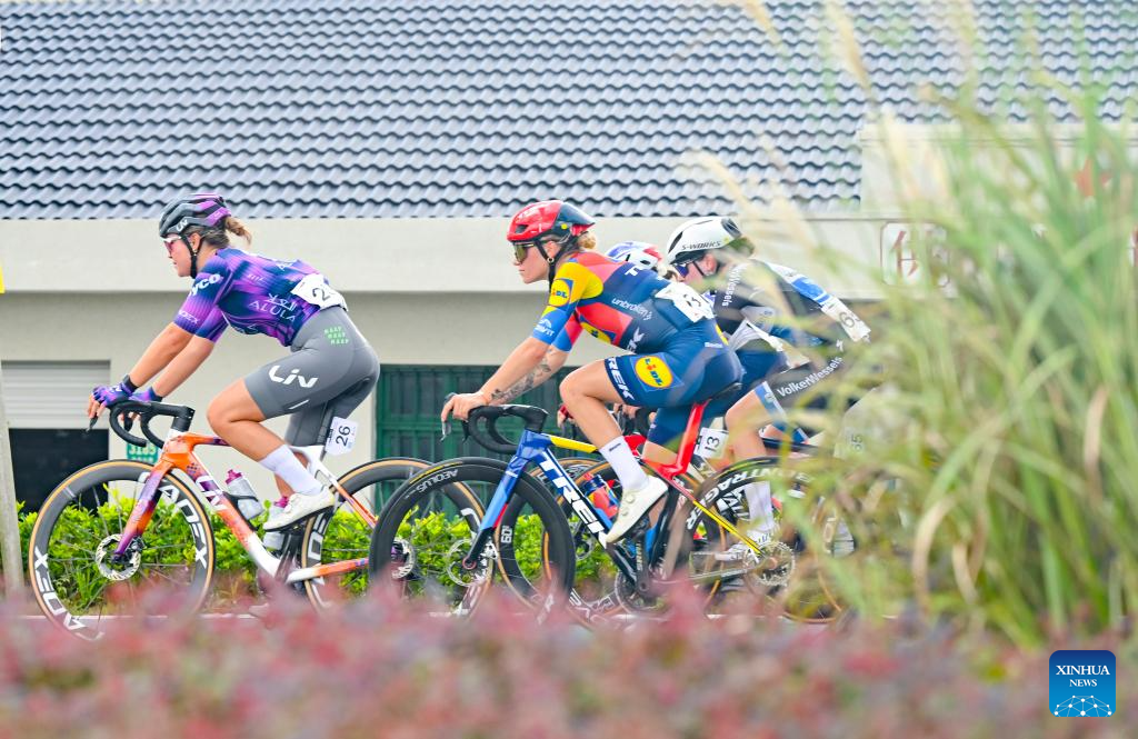 Cyclists compete during the Stage 2 of the UCI Women's WorldTour Tour of Chongming Island road cycling race in Shanghai, east China, Oct. 15, 2025. (Xinhua/Wang Xiang)