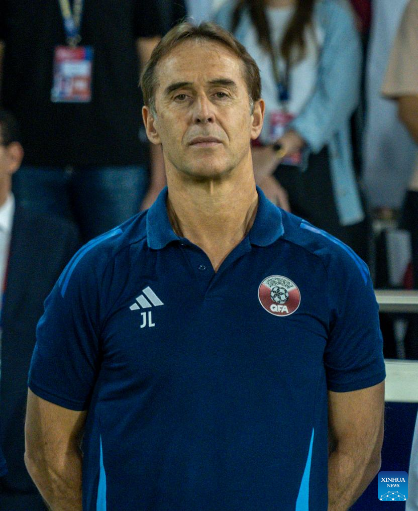 Head coach of Qatar Julen Lopetegui looks on before the FIFA World Cup 2026 AFC Asian Qualifiers group A playoffs match between Qatar and United Arab Emirates in Doha, Qatar, Oct. 14, 2025. (Photo by Nikku/Xinhua)