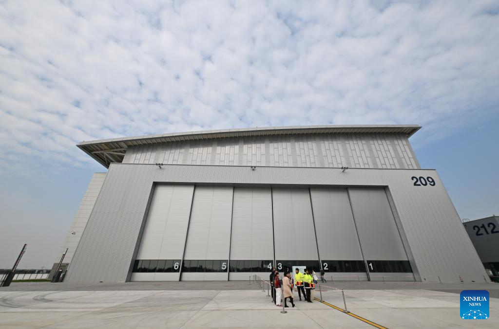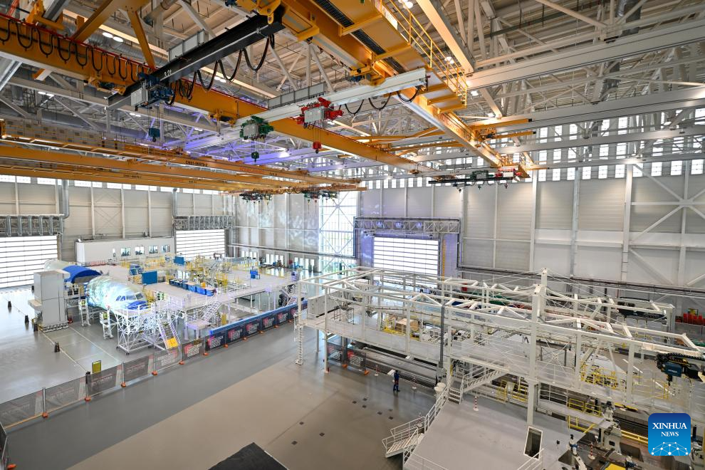 This photo shows Airbus' second Final Assembly Line (FAL) for A320 family aircraft in Tianjin, north China, Oct. 22, 2025.