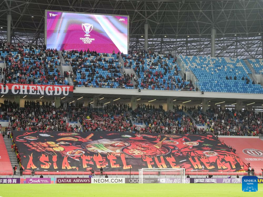 Fans cheer during the round 3 match between Chengdu Rongcheng of China and Johor Darul Ta'zim of Malaysia at AFC Champions League Elite in Chengdu, southwest China's Sichuan Province, Oct. 21, 2025. (Xinhua/Wang Xi)