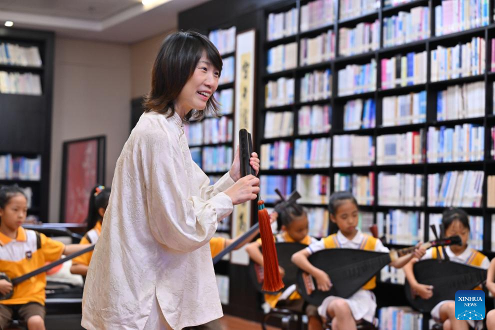 Cai Liyong, a Nanyin artist, teaches students during a Nanyin class at a primary school in Jinjiang, southeast China's Fujian Province, on Oct. 23, 2025. Nanyin, which originated from southeast China's Fujian Province, is known as the "living fossil" of ancient Chinese music and literally means music in the south. It is a traditional opera in Fujian dialect.