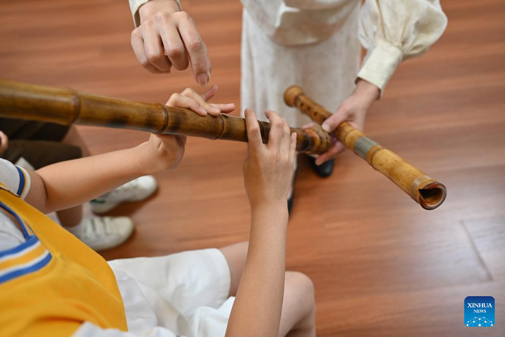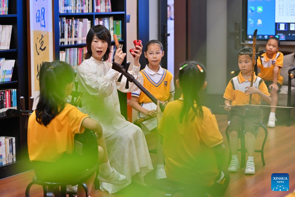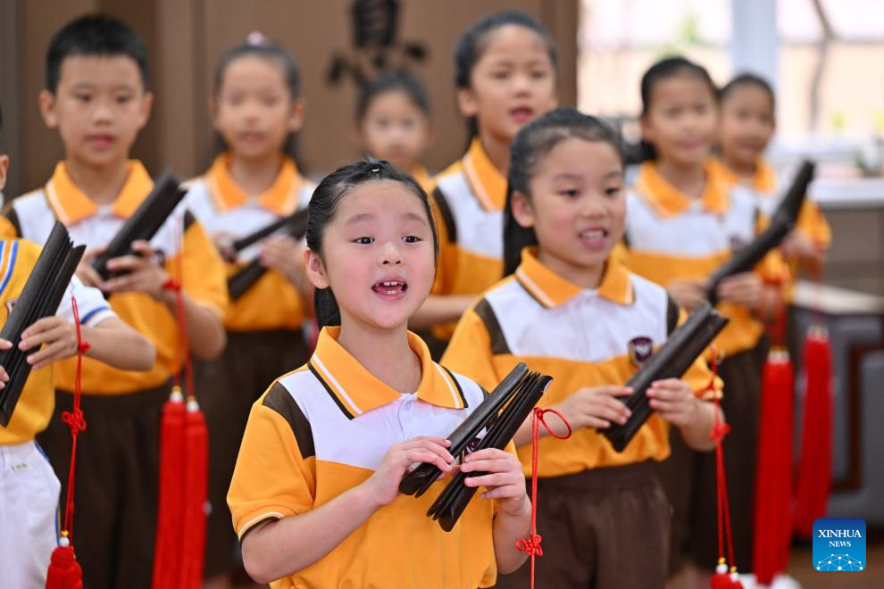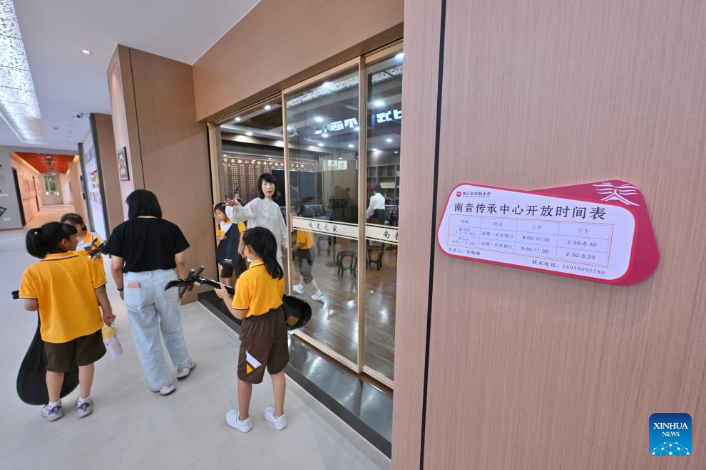 Students rehearse for a performance during a Nanyin class at a primary school in Jinjiang, southeast China's Fujian Province, on Oct. 23, 2025. Nanyin, which originated from southeast China's Fujian Province, is known as the "living fossil" of ancient Chinese music and literally means music in the south. It is a traditional opera in Fujian dialect.