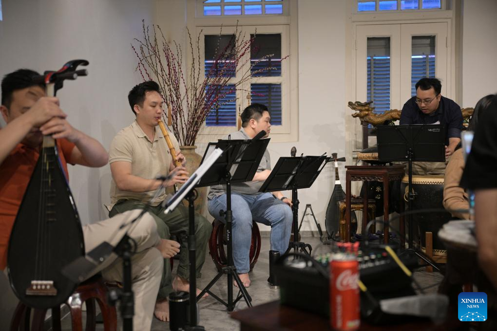 Members of a music society named Siong Leng rehearse Nanyin in Singapore on Jan. 8, 2025. Nanyin, which originated from southeast China's Fujian Province, is known as the "living fossil" of ancient Chinese music and literally means music in the south. It is a traditional opera in Fujian dialect.