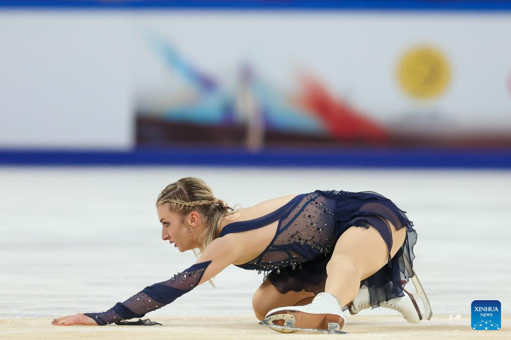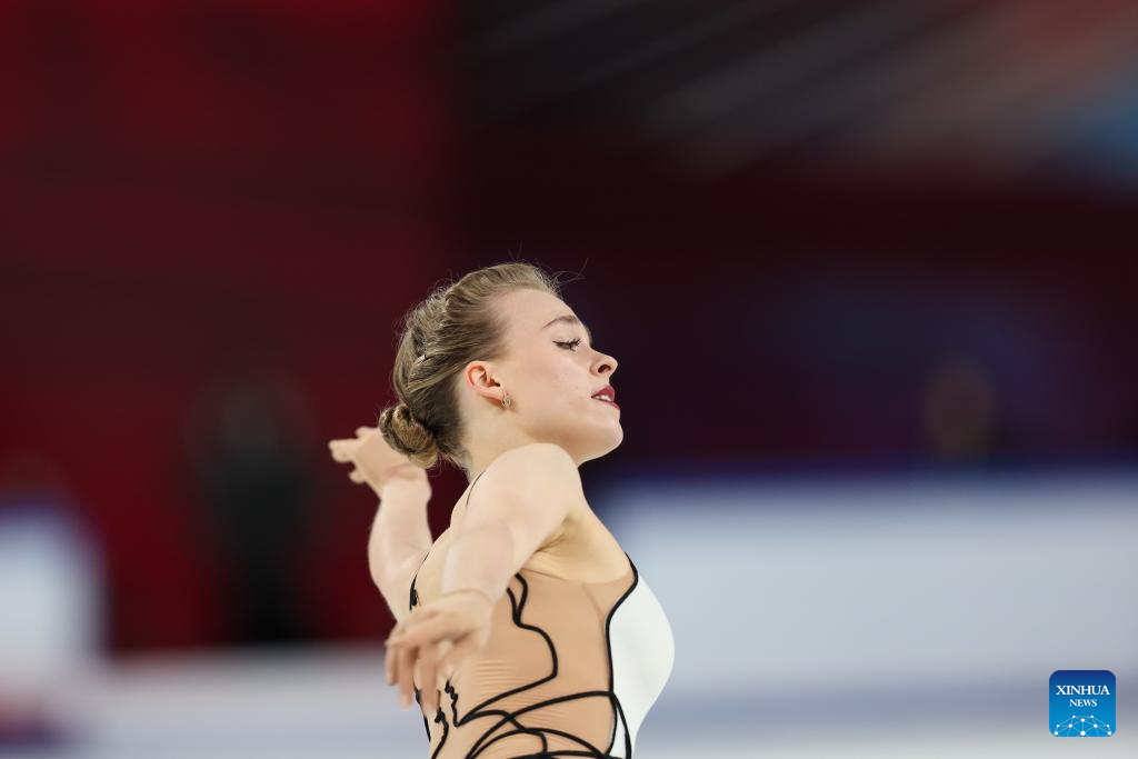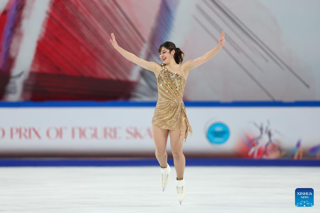 Anastasiia Gubanova of Georgia performs during the women's free skating at the Cup of China ISU Grand Prix of Figure Skating 2025 in southwest China's Chongqing Municipality, on Oct. 25, 2025. (Xinhua/Huang Wei)