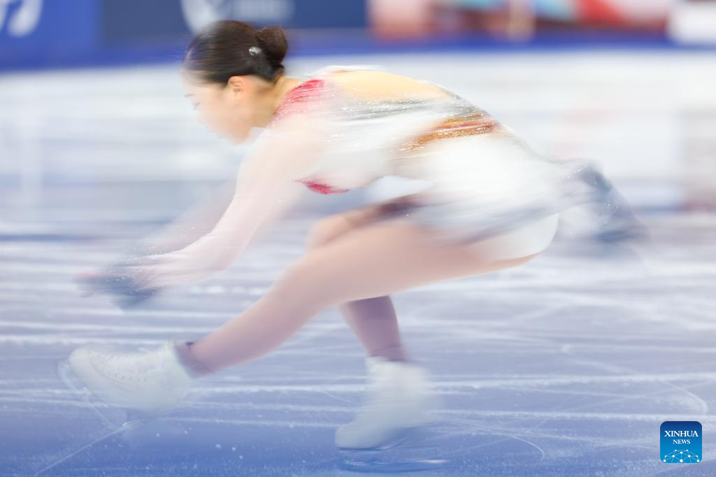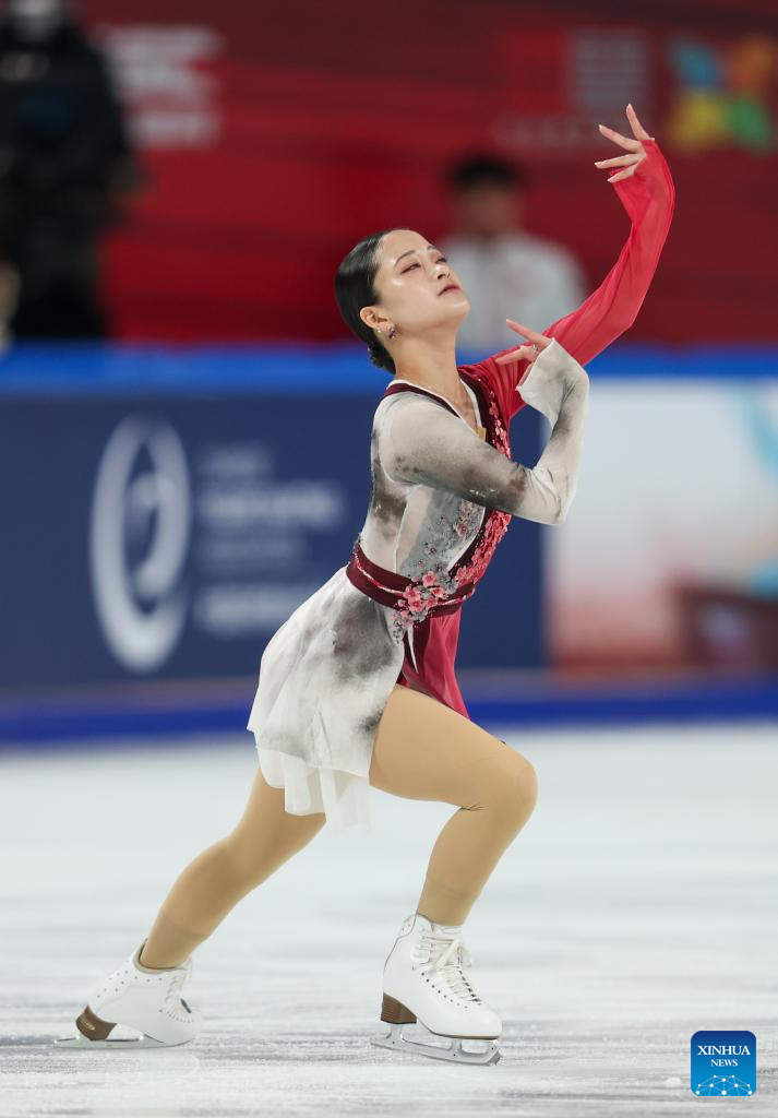 Yoshida Hana of Japan performs during the women's free skating at the Cup of China ISU Grand Prix of Figure Skating 2025 in southwest China's Chongqing Municipality, on Oct. 25, 2025. (Xinhua/Huang Wei)