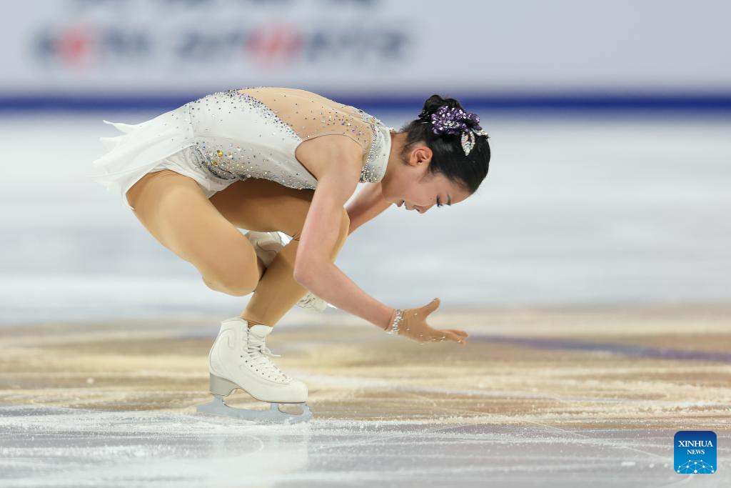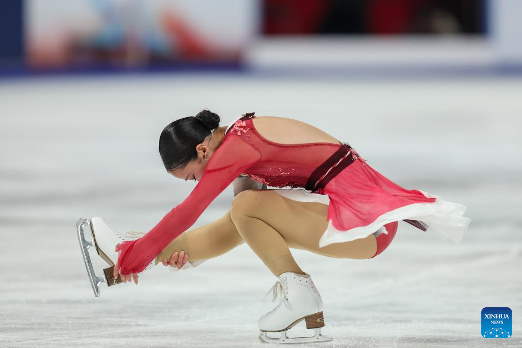 Zhang Ruiyang of China performs during the women's free skating at the Cup of China ISU Grand Prix of Figure Skating 2025 in southwest China's Chongqing Municipality, on Oct. 25, 2025. (Xinhua/Huang Wei)