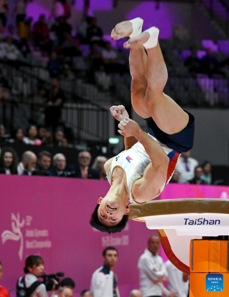 Carlos Edriel Yulo of the Philippines competes during the men's Vault Final at 53rd FIG Artistic Gymnastics World Championships in Jakarta, Indonesia, on Oct. 25, 2025. (Xinhua/Agung Kuncahya B.)