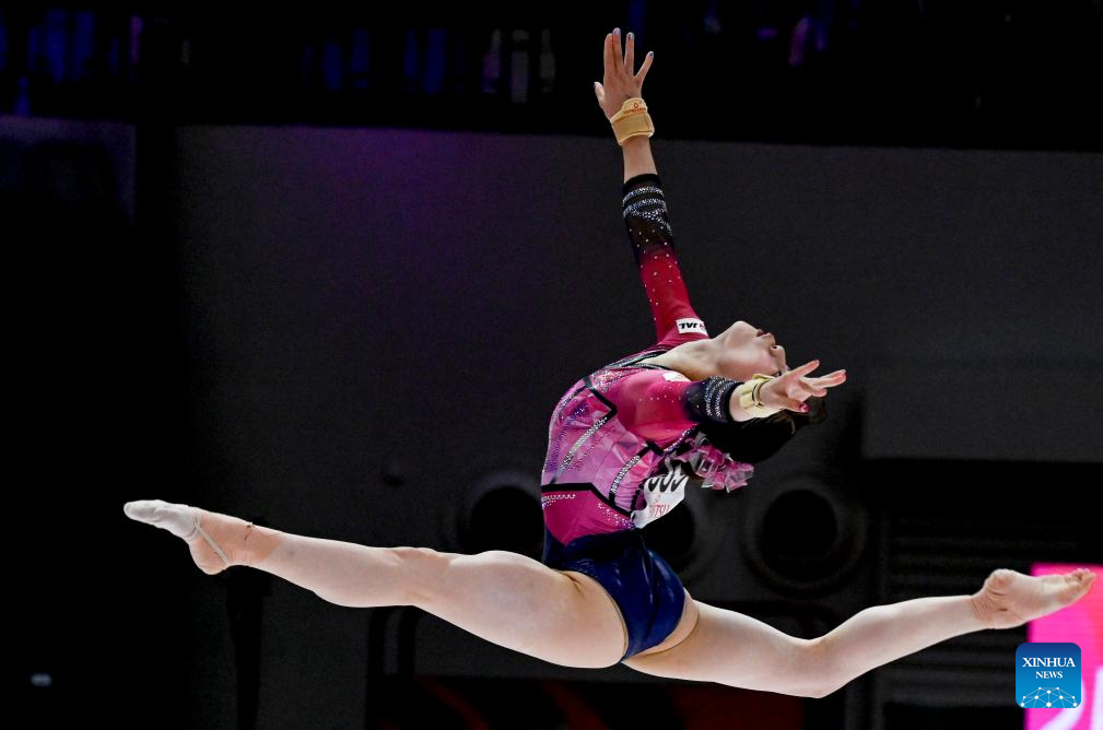 Sugihara Aiko of Japan competes during the women's Floor Exercise Final at 53rd FIG Artistic Gymnastics World Championships in Jakarta, Indonesia, on Oct. 25, 2025. (Xinhua/Agung Kuncahya B.)