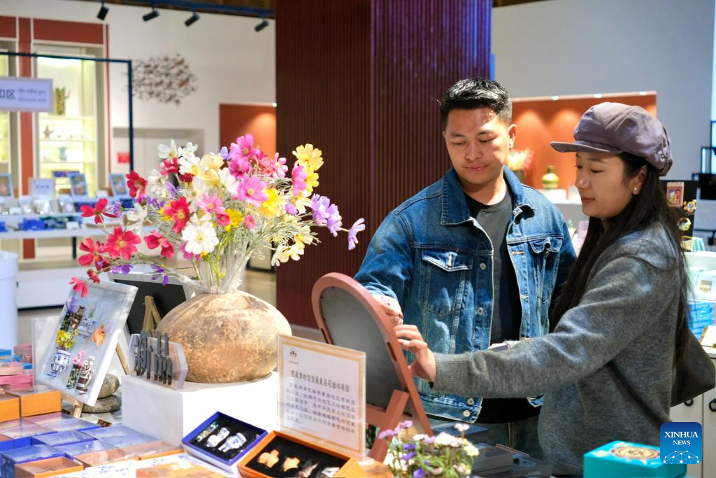 Tourists choose cultural and creative products at Xizang Museum in Lhasa, southwest China's Xizang Autonomous Region, Oct. 21, 2025. (Xinhua/Zhou Yulong)