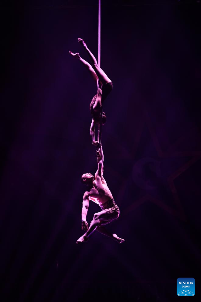 Artists perform during the opening ceremony of the 8th China International Circus Festival in Hengqin, south China's Guangdong Province, Nov. 1, 2025. The festival kicked off Saturday in Hengqin, with the participation of nearly 500 artists from 18 top circus troupes. (Xinhua/Xiao Ennan)