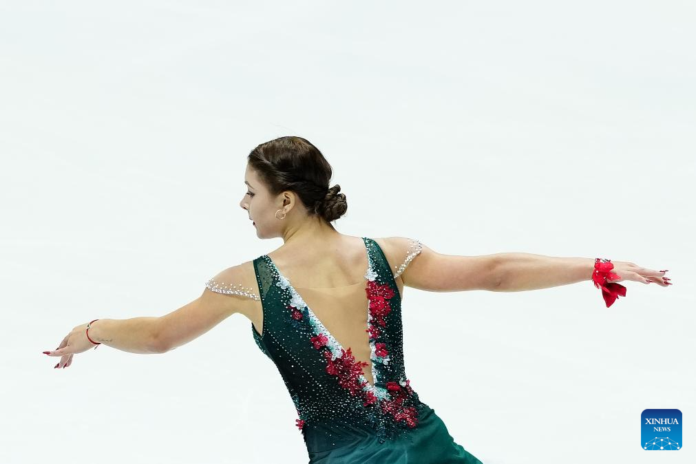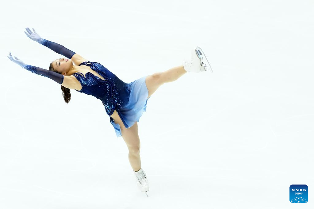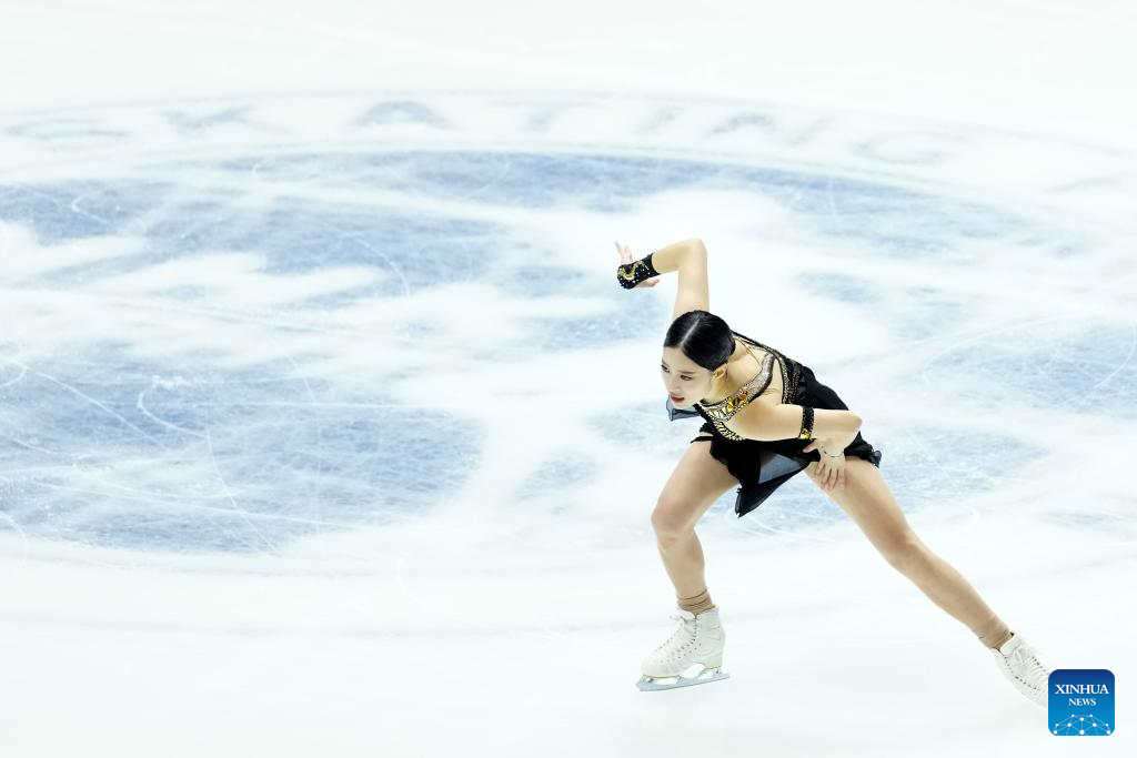 Sofia Samodelkina of Kazakhstan performs during the women's short program at ISU Grand Prix of Figure Skating NHK Trophy 2025 in Osaka, Japan, Nov. 7, 2025. (Xinhua/Jia Haocheng)