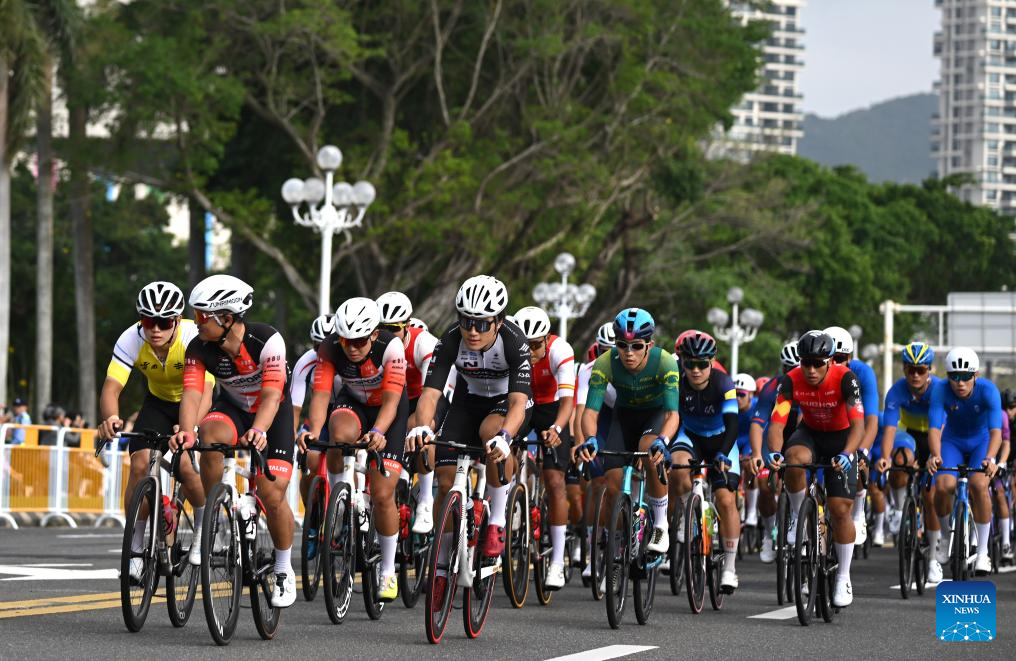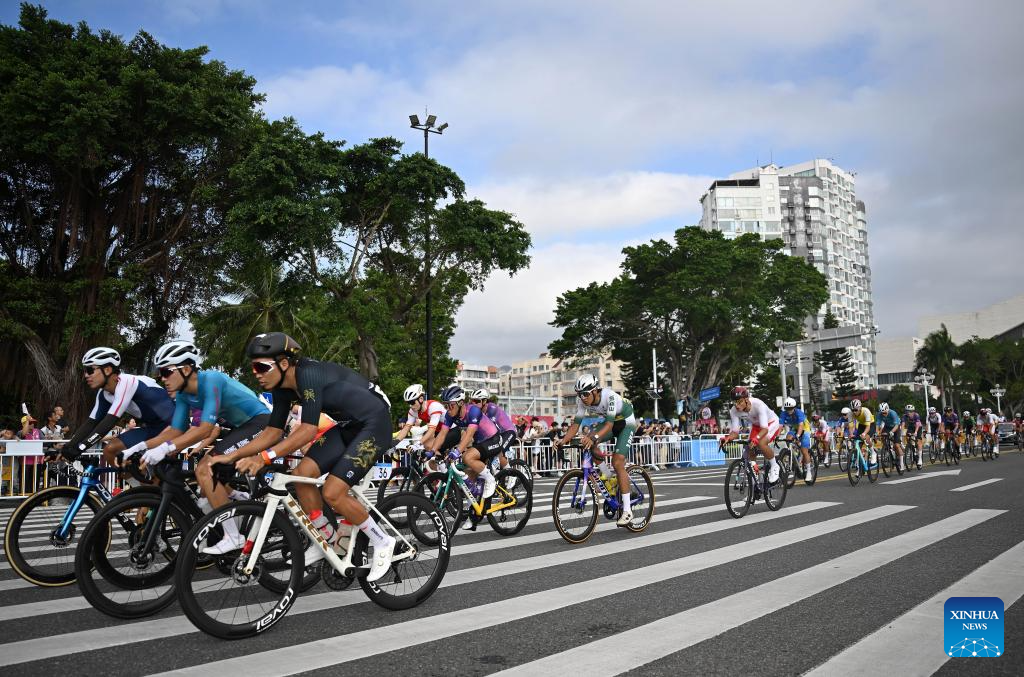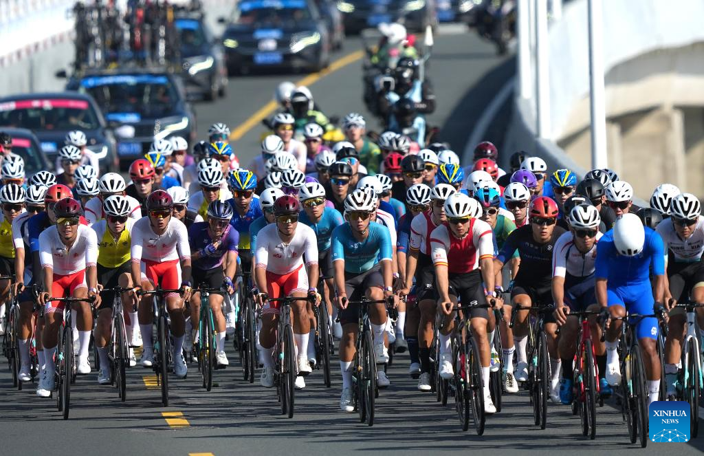 (251108) -- ZHUHAI, Nov. 8, 2025 (Xinhua) -- Cyclists compete during the men's road race of cycling road at China's 15th National Games in south China's Guangdong Province, Nov. 8, 2025. (Xinhua/Lian Zhen)