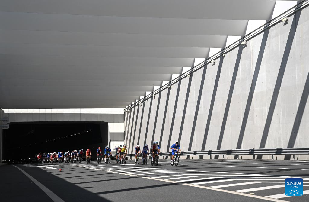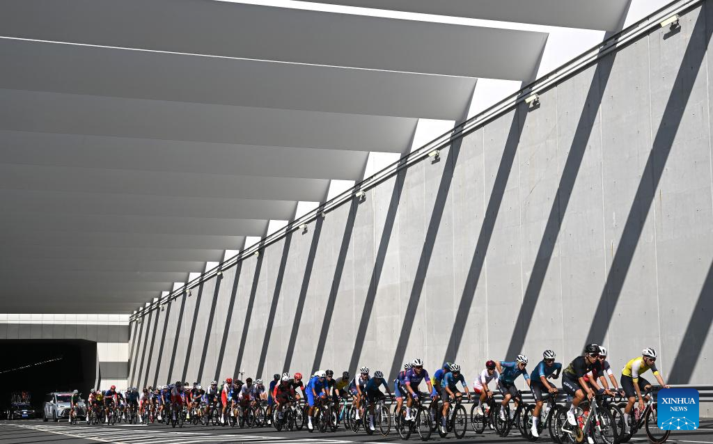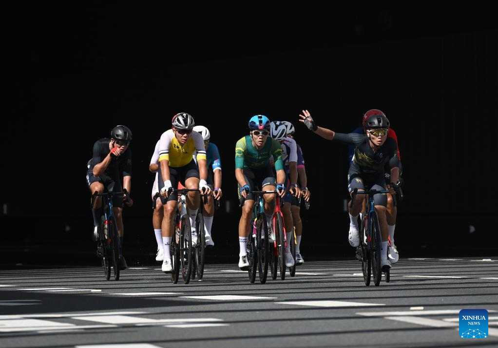 (251108) -- HONG KONG, Nov. 8, 2025 (Xinhua) -- Cyclists compete during the men's road race of cycling road at China's 15th National Games in Hong Kong, south China, Nov. 8, 2025. (Xinhua/Lui Sui Wai)