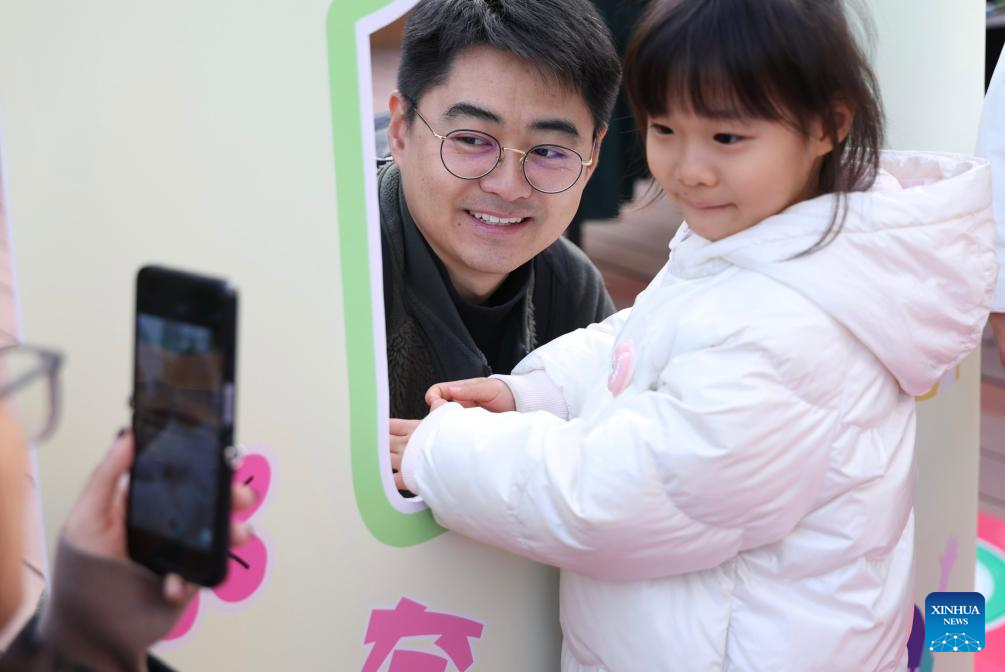 A girl and her father take part in a parent-child activity held by the Parent School of China National Children's Center in Beijing, capital of China, Nov. 8, 2025. (Xinhua/Zhang Yuwei)