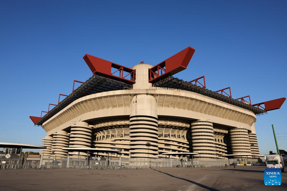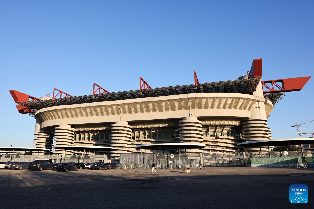 This photo taken on Nov. 4, 2025 shows San Siro Stadium in Milan, Italy. The Milan-Cortina 2026 Olympic Winter Games will open on February 6, 2026 at Milan's San Siro Stadium. (Xinhua/Li Jing)