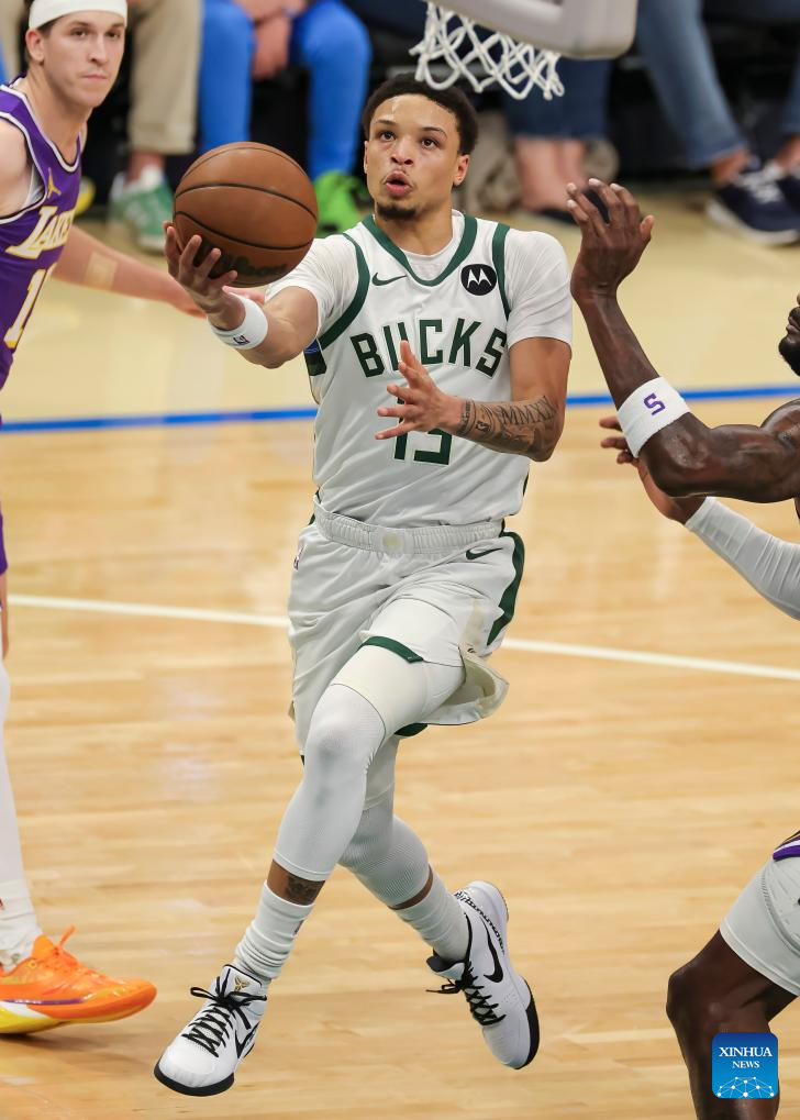 Milwaukee Bucks' Cole Anthony competes during the 2025-2026 NBA regular season game between Milwaukee Bucks and Los Angeles Lakers in Milwaukee, the United States, on Nov. 15, 2025. (Photo by Joel Lerner/Xinhua)
