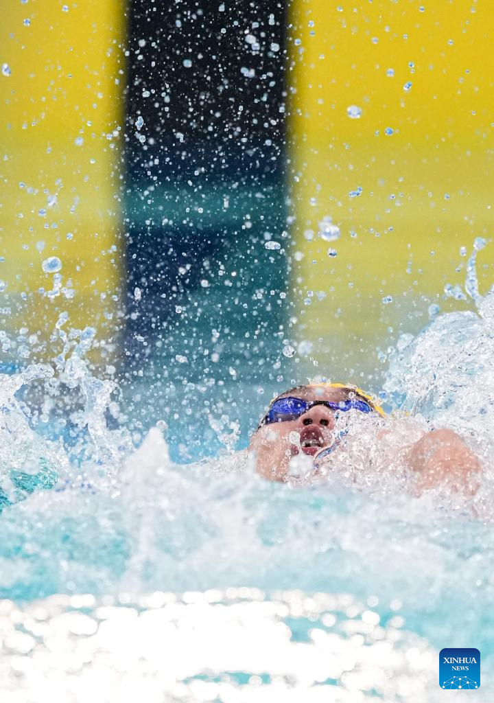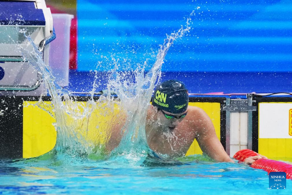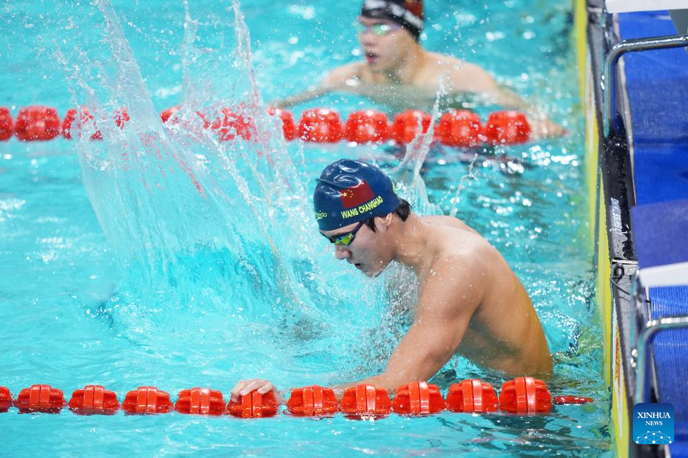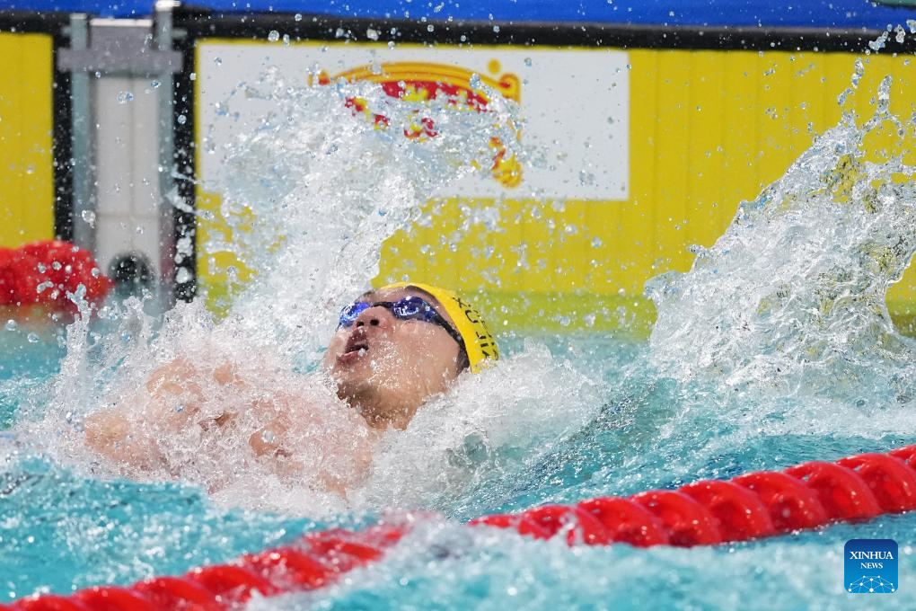 Xu Jiayu of Zhejiang competes during the men's 50m backstroke preliminary of swimming at China's 15th National Games in Shenzhen, south China's Guangdong Province, Nov. 16, 2025. (Xinhua/Tenzin Nyida)