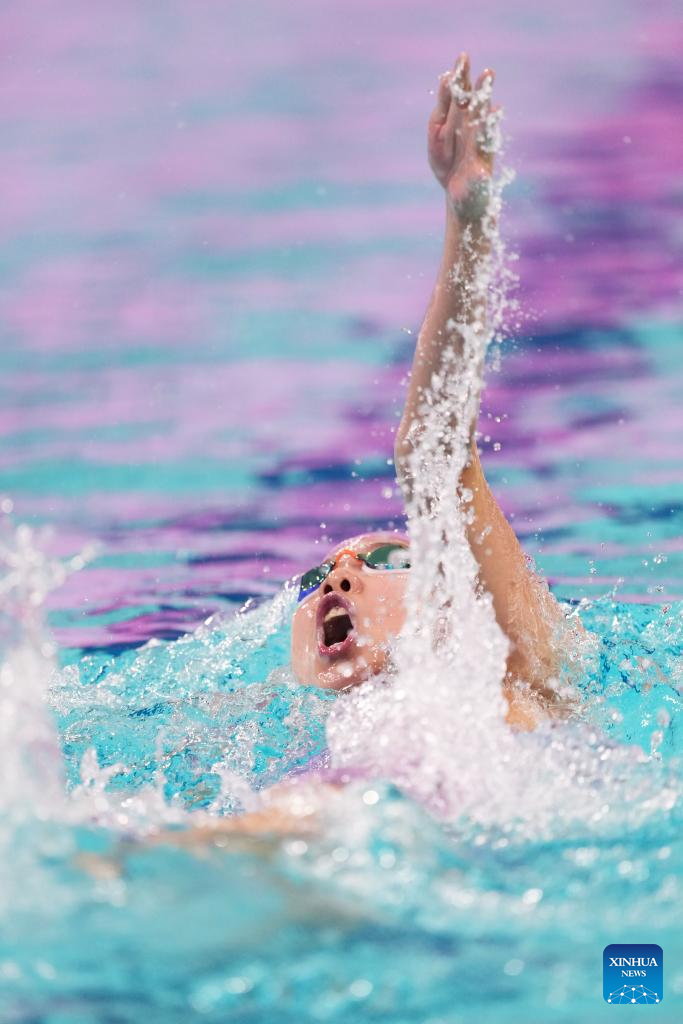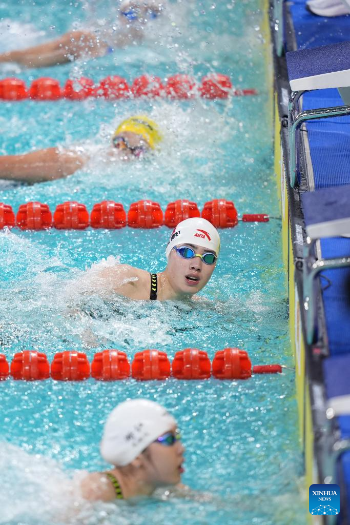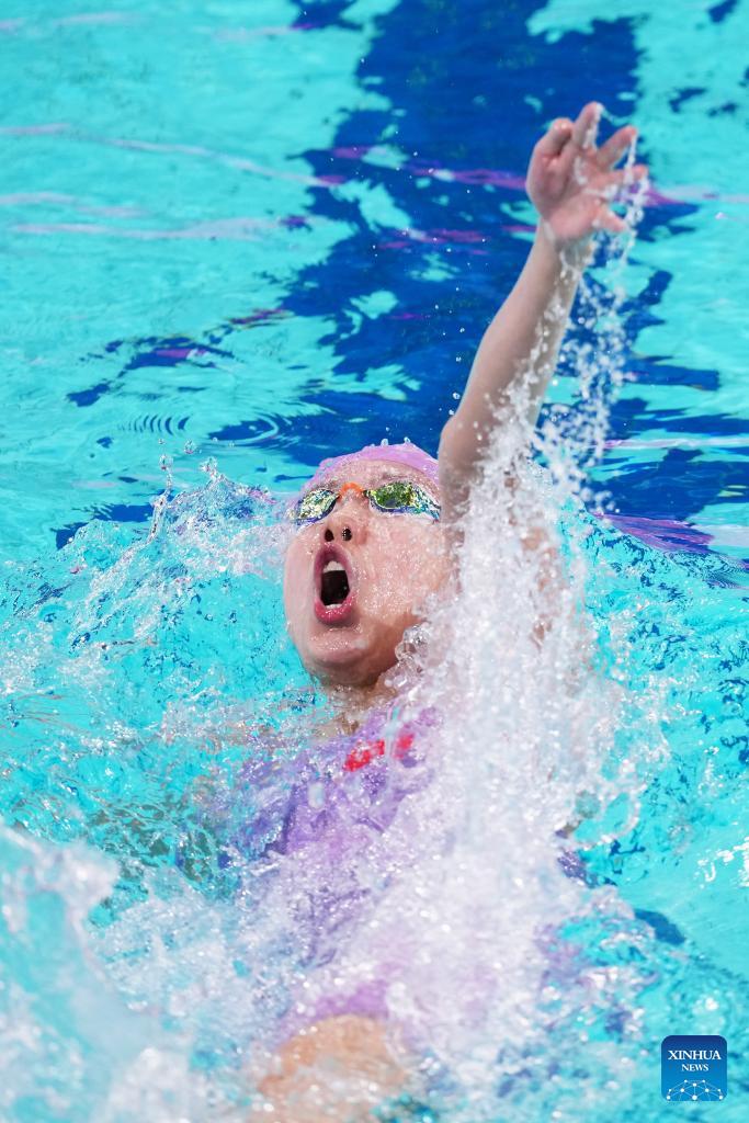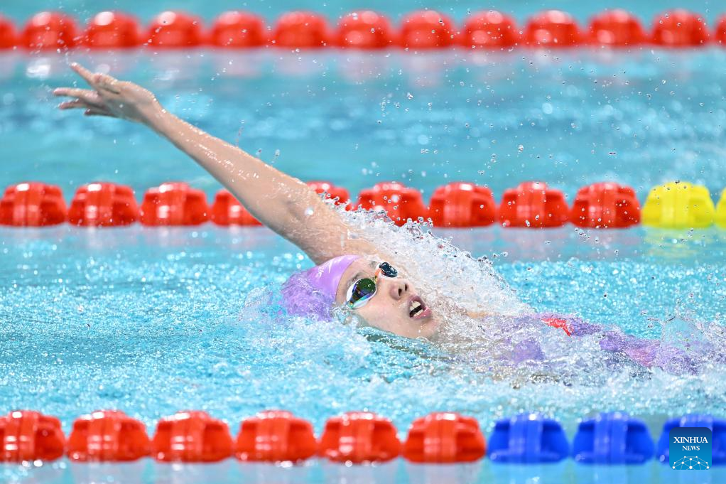 Peng Xuwei of Hubei competes during the women's 200m backstroke final of swimming at China's 15th National Games in Shenzhen, south China's Guangdong Province, Nov. 16, 2025. (Xinhua/Tenzin Nyida)