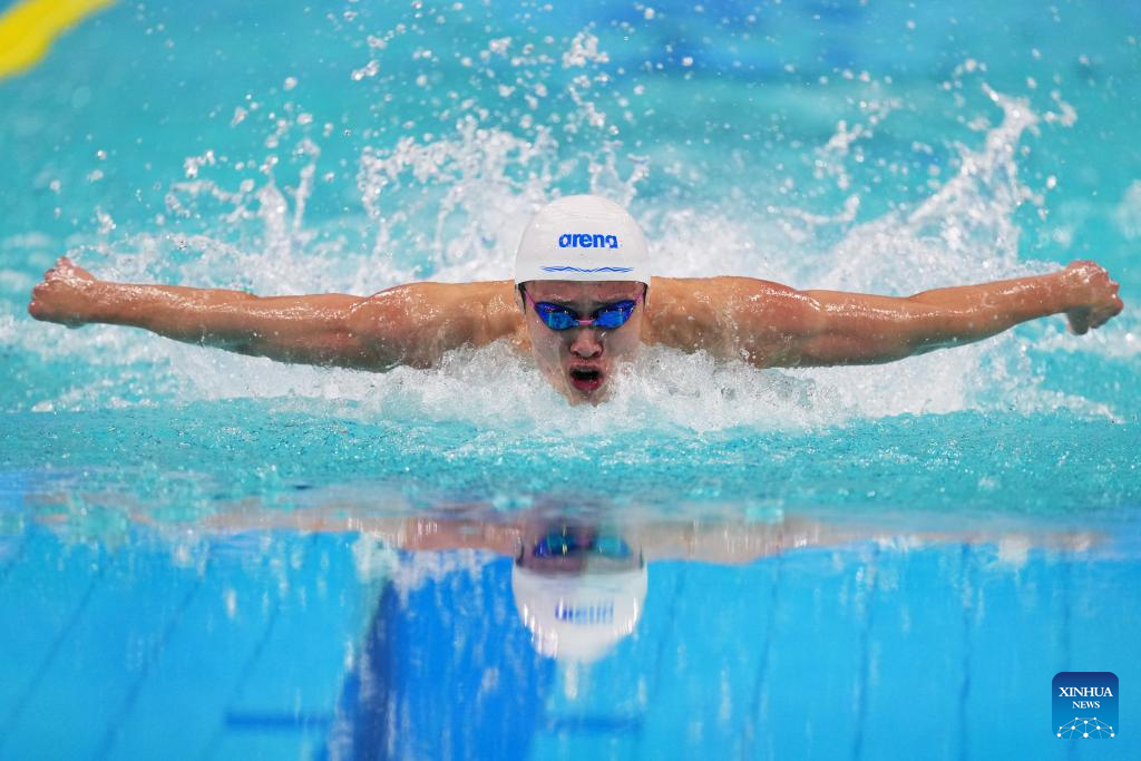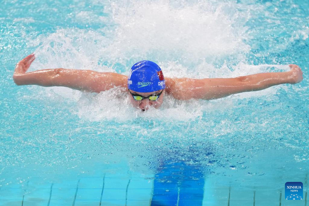 Chen Juner of Guangdong competes during the men's 100m butterfly final of swimming at China's 15th National Games in Shenzhen, south China's Guangdong Province, Nov. 16, 2025. (Xinhua/Xue Yuge)