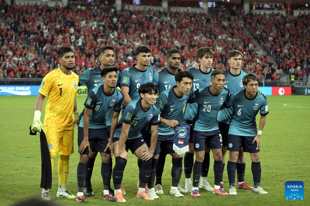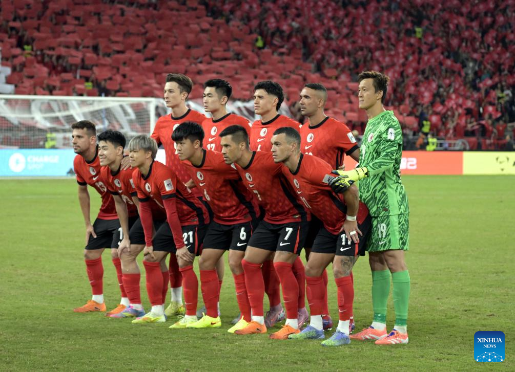 (251118) -- HONG KONG, Nov. 18, 2025 (Xinhua) -- Players of Singapore pose for a group photo before the AFC Asian Cup 2027 Qualifiers 3rd round group C football match between China's Hong Kong and Singapore in Hong Kong, south China, Nov. 18, 2025. (Xinhua/Lo Ping Fai)