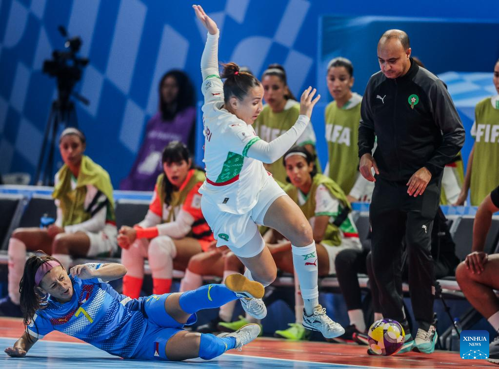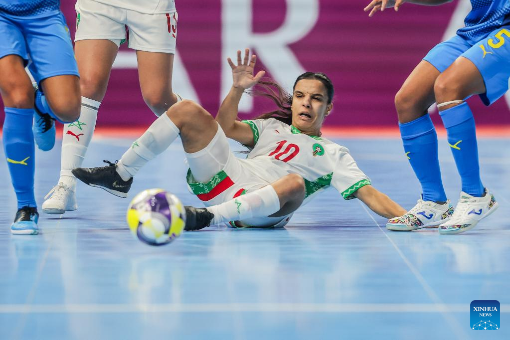 Drissia Korrych of Morocco competes during the group A match between Morocco and the Philippines at the FIFA Futsal Women's World Cup 2025 in Pasig City, the Philippines, Nov. 24, 2025. (Xinhua/Rouelle Umali)