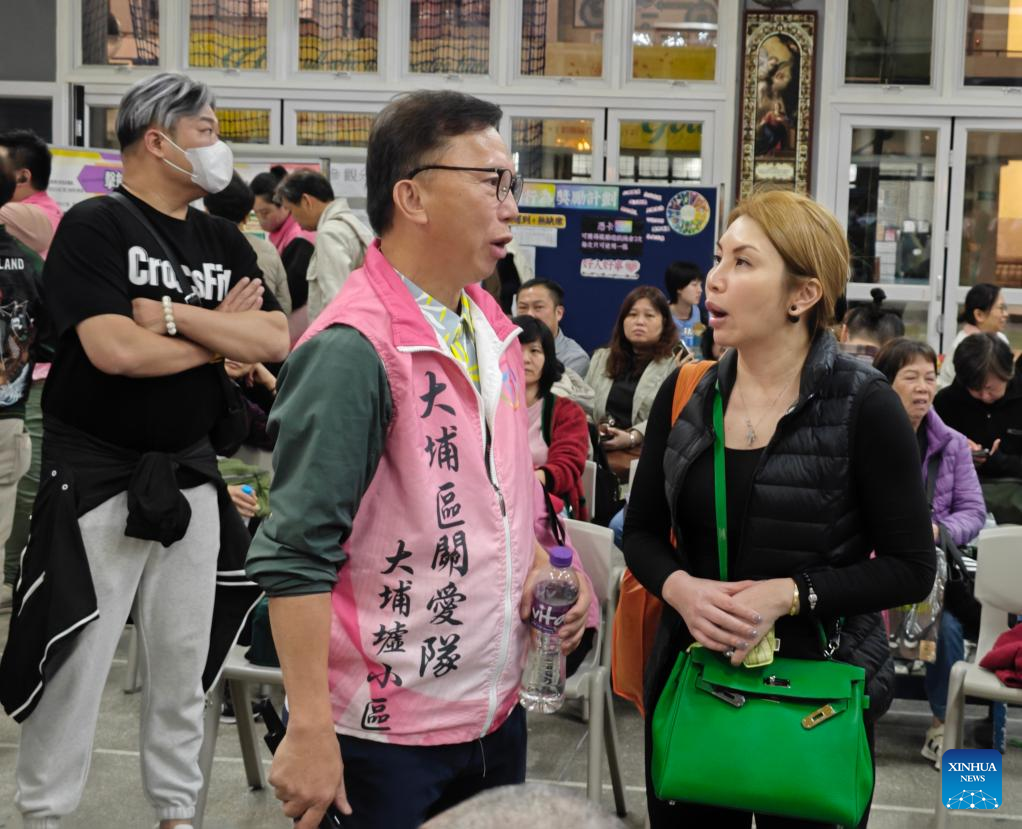 A care team member works at an inter-departmental help desk after a fire broke out at a residential building in the Tai Po area in Hong Kong, south China, Nov. 26, 2025. (Xinhua/Chen Duo)