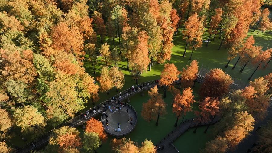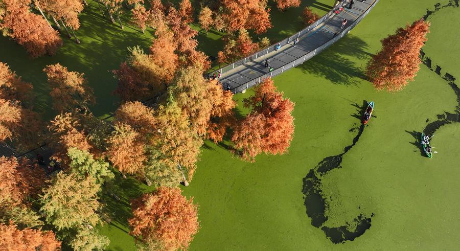 ZhejiangPictorial | Waterlogged forest dressed in colorful "outfit" in E China's Hangzhou