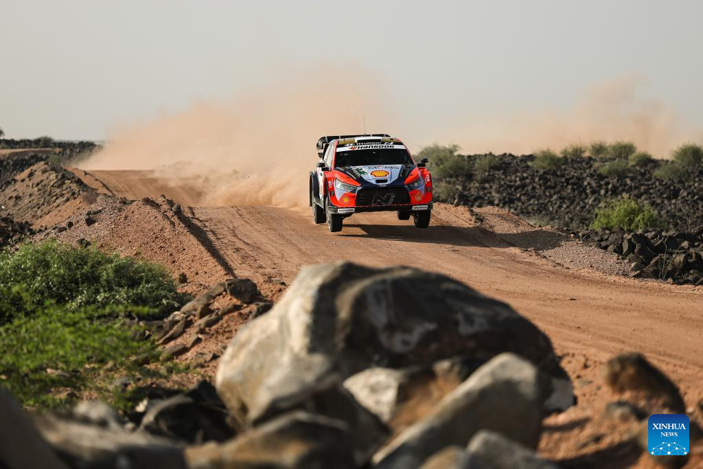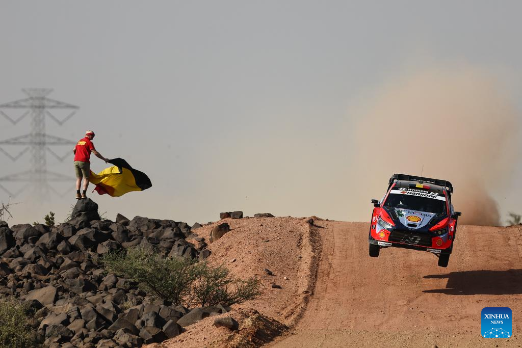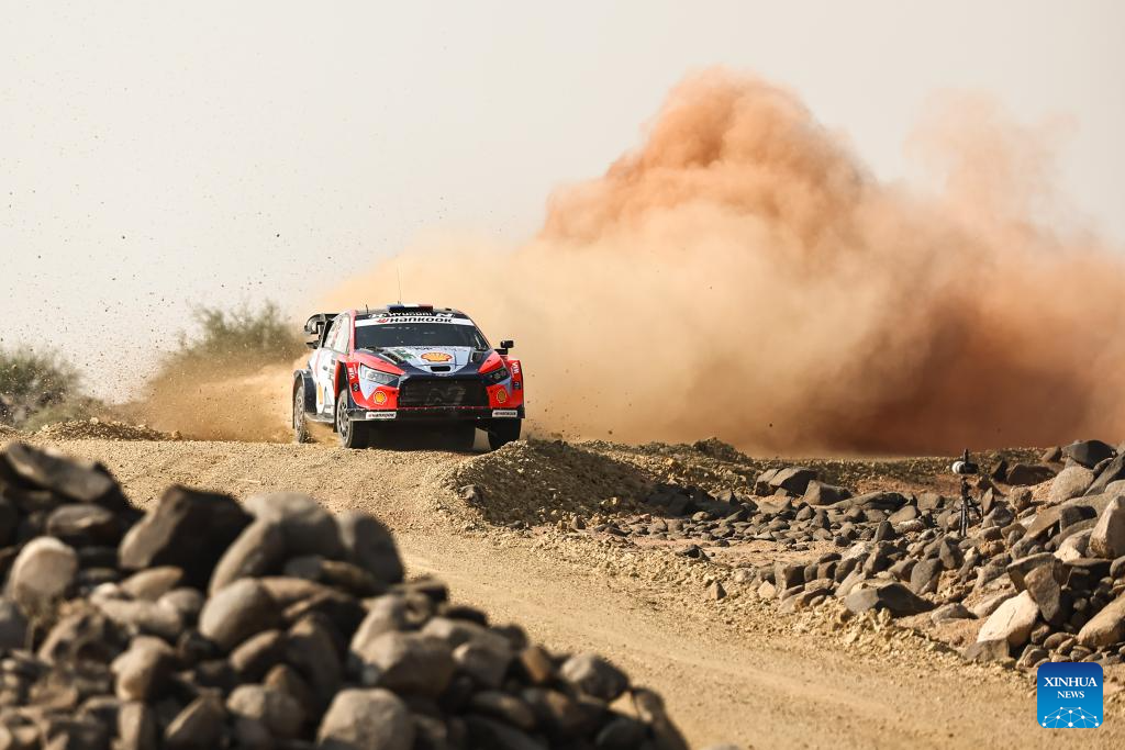 Hyundai Shell Mobis World Rally Team Belgian driver Thierry Neuville and Belgian co-driver Martijn Wydaeghe compete during the last day of the FIA World Rally Championship (WRC) Saudi Arabia in Jeddah, Saudi Arabia, Nov. 29, 2025. (Photo by Qian Jun/Xinhua)