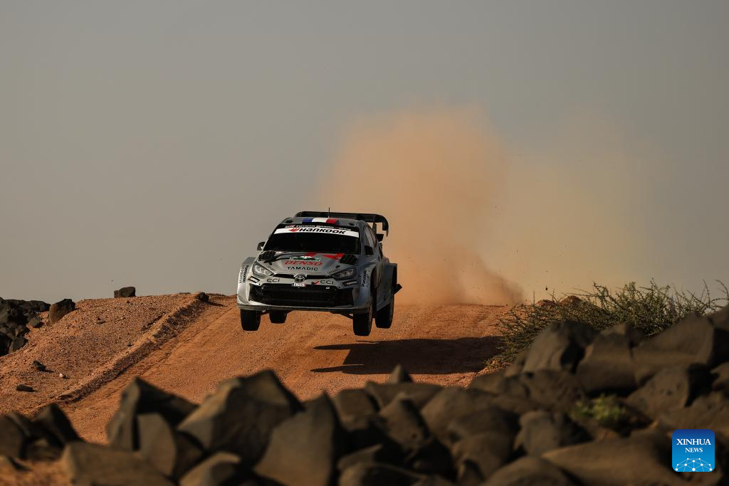 Toyota Gazoo Racing World Rally Team's French driver Sebastien Ogier and French co-driver Vincent Landais compete during the last day of the FIA World Rally Championship (WRC) Saudi Arabia in Jeddah, Saudi Arabia, Nov. 29, 2025. (Photo by Qian Jun/Xinhua)