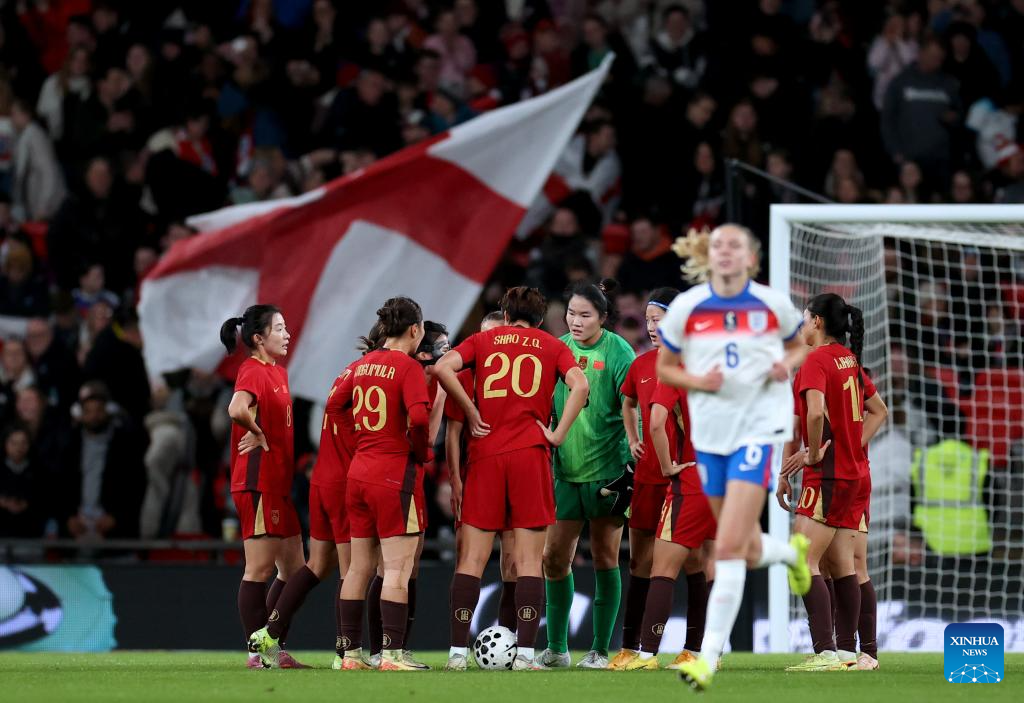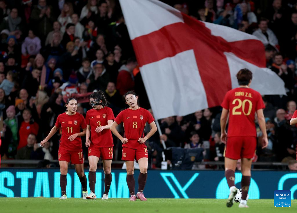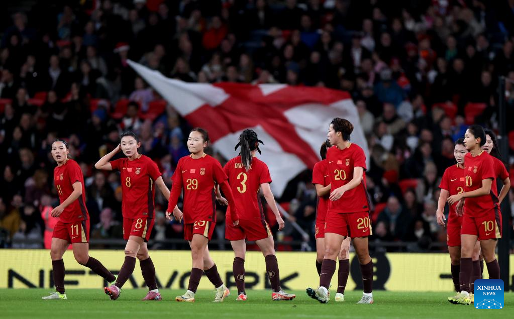 China's players react during an international women's football friendly match between China and England at Wembley Stadium in London, Britain, Nov. 29, 2025. (Xinhua/Li Ying)