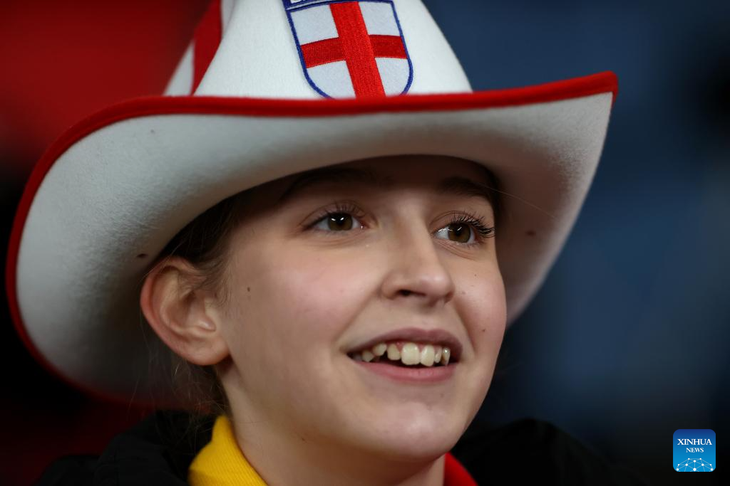 A young supporter of England is seen during an international women's football friendly match between China and England at Wembley Stadium in London, Britain, Nov. 29, 2025. (Xinhua/Li Ying)