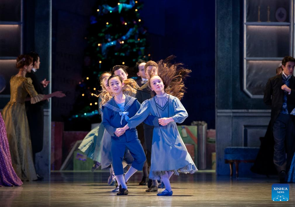 Raymond Bai (L front) performs as Fritz in a dress rehearsal of the Norwegian National Ballet's traditional Christmas production "The Nutcracker" in Oslo, capital of Norway, on Nov. 26, 2025. (Norwegian National Opera & Ballet/Handout via Xinhua)