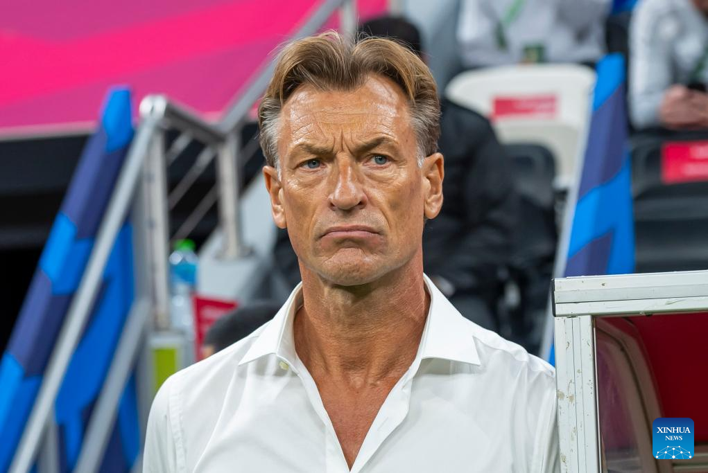 Herve Renard, head coach of Saudi Arabia, looks on prior to the FIFA Arab Cup 2025 Semi-final match between Saudi Arabia and Jordan at Al Bayt Stadium in Al Khor, Qatar, on Dec. 15, 2025. (Photo by Nikku/Xinhua)