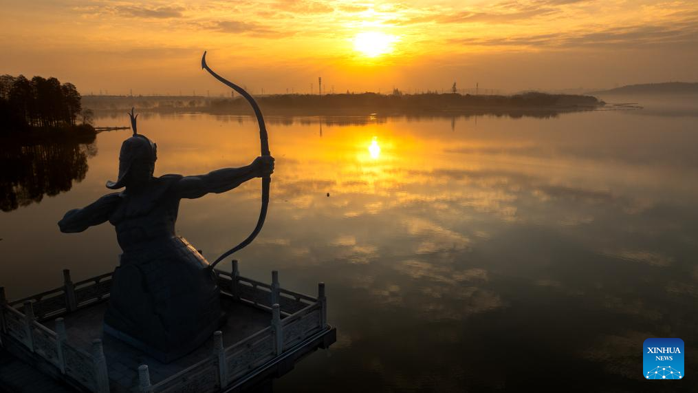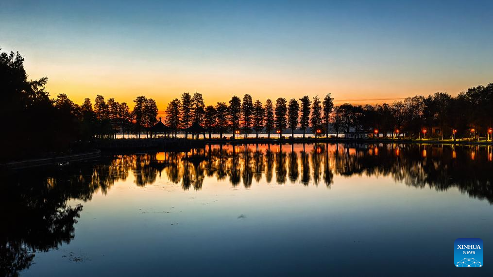 This photo taken on Nov. 16, 2025 shows the scenery at dawn in Donghu Lake scenic area in Wuhan, central China's Hubei Province. (Xinhua/Shen Hongbing)