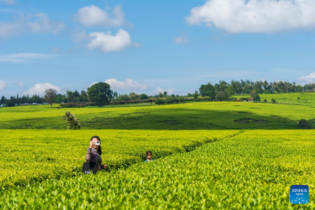 Tourists enjoy the scenery of a tea garden in Kiambu, Kenya, Jan. 1, 2026 (Xinhua/Xie Jianfei)