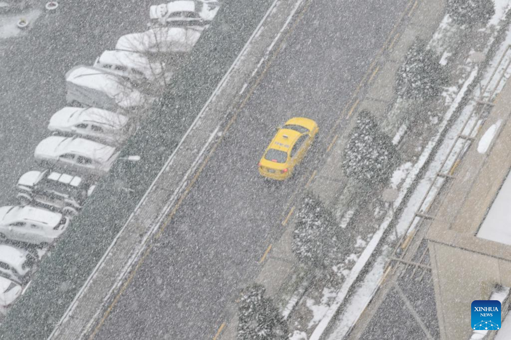 This photo taken on Jan. 1, 2026 shows the view of a street in snow in Istanbul, Türkiye. (Xinhua/Liu Lei)