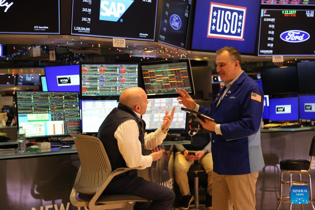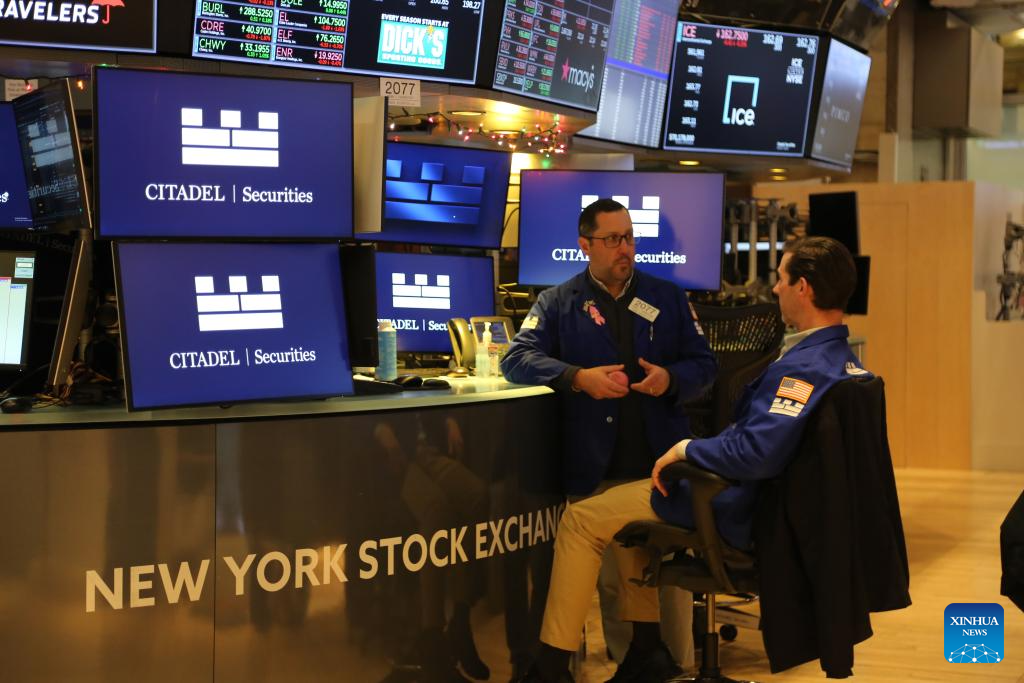 Traders exchange ideas on the floor of the New York Stock Exchange in New York, the United States, Dec. 31, 2025. U.S. stocks ended lower on Wednesday. The Dow Jones Industrial Average fell by 303.77 points, or 0.63 percent, to 48,063.29. The S&P 500 sank 50.74 points, or 0.74 percent, to 6,845.5. The Nasdaq Composite Index shed 177.089 points, or 0.76 percent, to 23,241.991. (Xinhua/Liu Yanan)