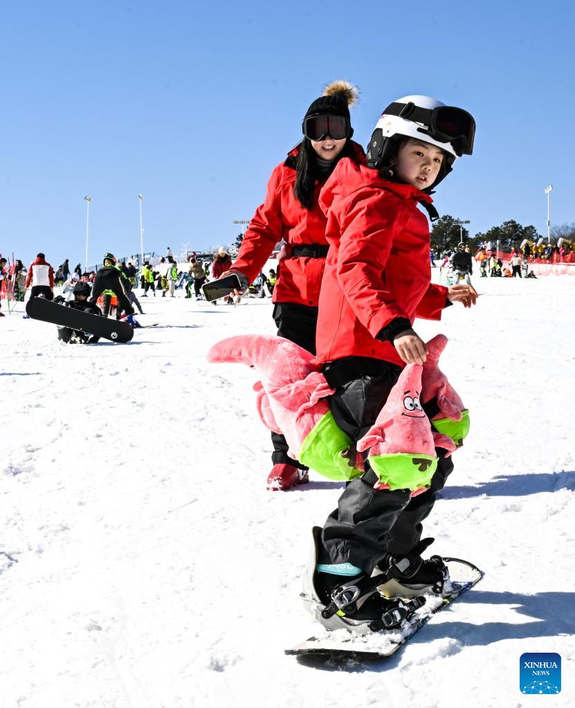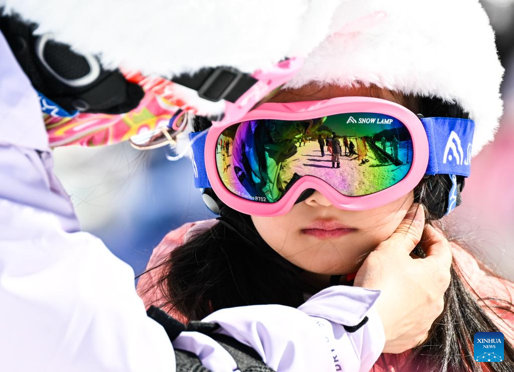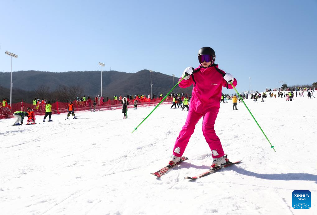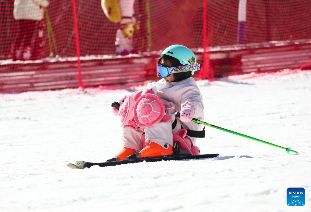 A child prepares to ski at a ski resort in Jurong, east China's Jiangsu Province, Jan. 11, 2026. (Xinhua/Ji Chunpeng)