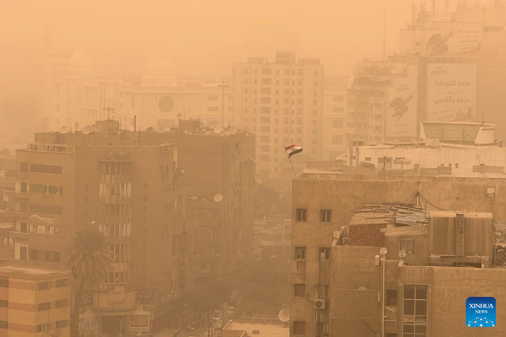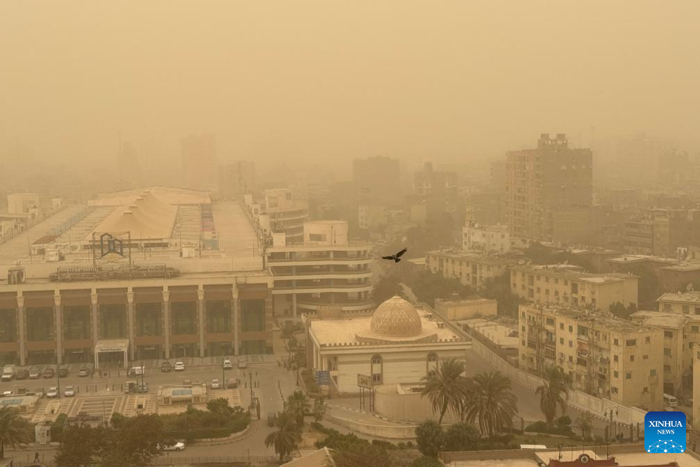 Buildings are shrouded in sand and dust during a sandstorm in Cairo, Egypt, Jan. 12, 2026. (Xinhua/Ahmed Gomaa)