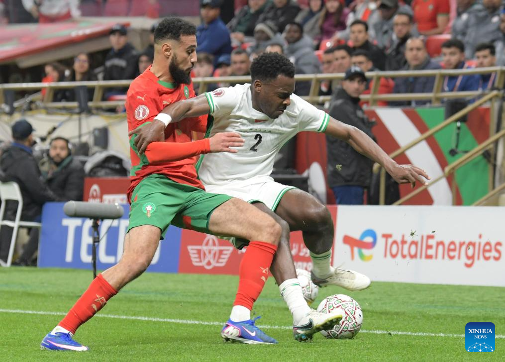 Nigeria's Bright Osayi-Samuel (R) vies against Morocco's Noussair Mazraoui during the Africa Cup of Nations semifinal match between Morocco and Nigeria in Rabat, Morocco, Jan. 14, 2026. (Photo by Aissa/Xinhua)