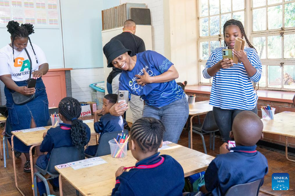 Parents take photos of their kids on the first day of a new semester at a school in Johannesburg, South Africa, Jan. 14, 2026. (Photo by Shiraaz Mohamed/Xinhua)