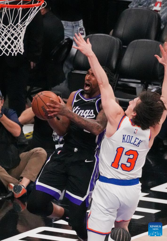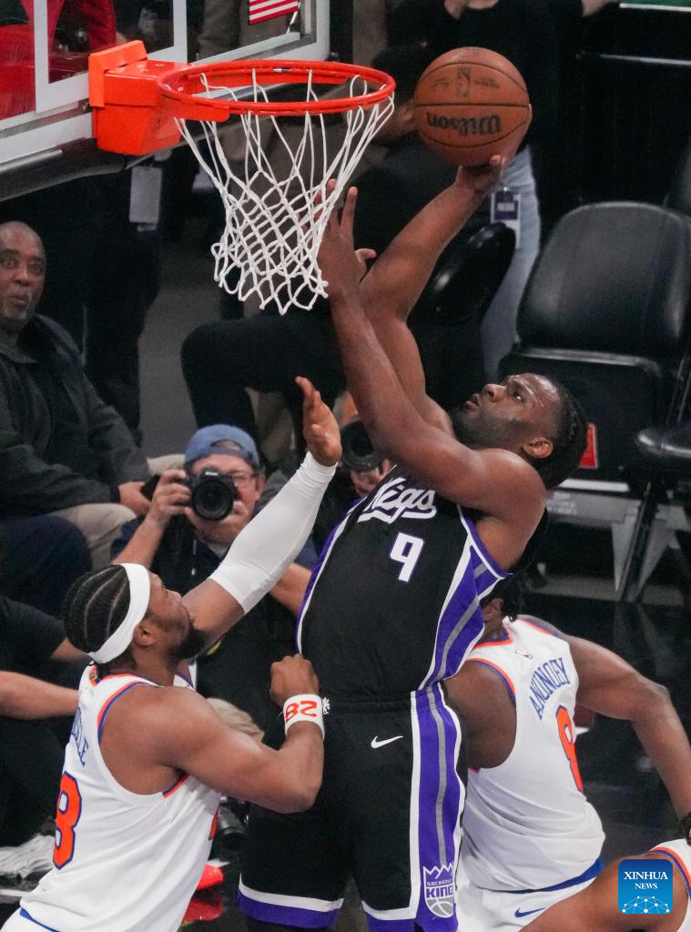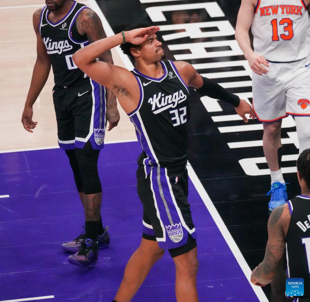 Precious Achiuwa (C) of Sacramento Kings competes during the 2025-2026 NBA regular season basketball game between Sacramento Kings and New York Knicks in Sacramento, the United States, Jan. 14, 2026. (Photo by Sun Yuxuan/Xinhua)