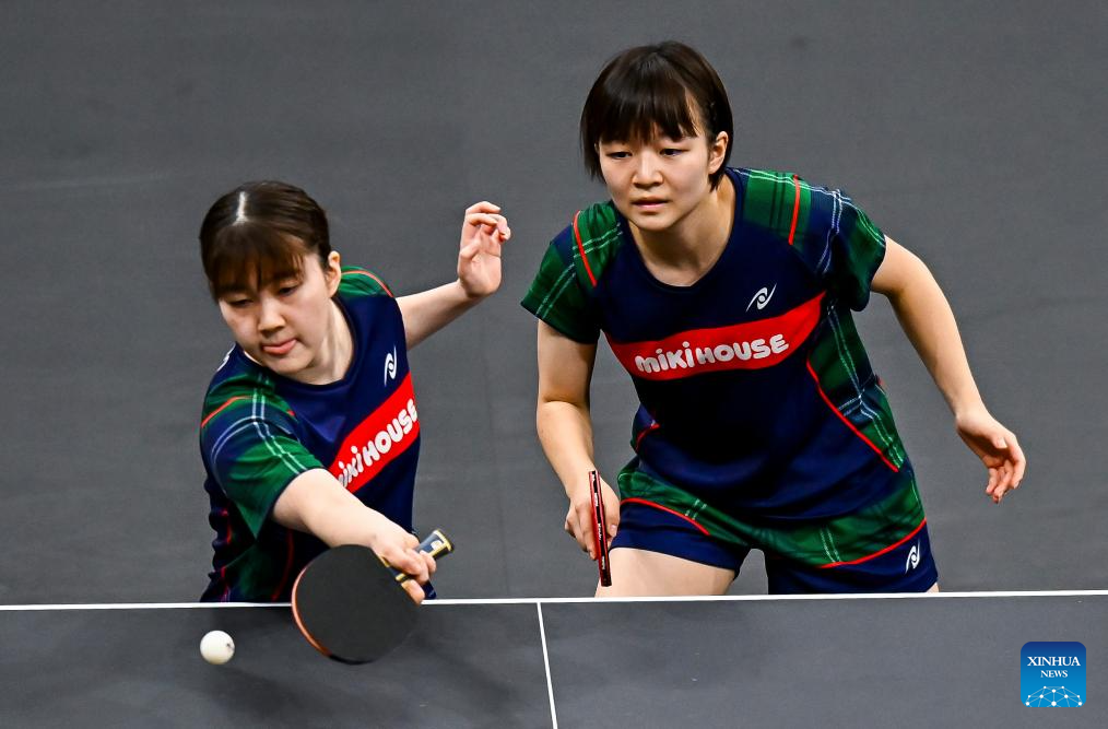 Yokoi Sakura/Odo Satsuki (L) of Japan compete during the women's doubles final match against Sato Hitomi/Shibata Saki of Japan at the WTT Star Contender Doha 2026 in Doha, Qatar, Jan. 17, 2026. (Photo by Nikku/Xinhua)