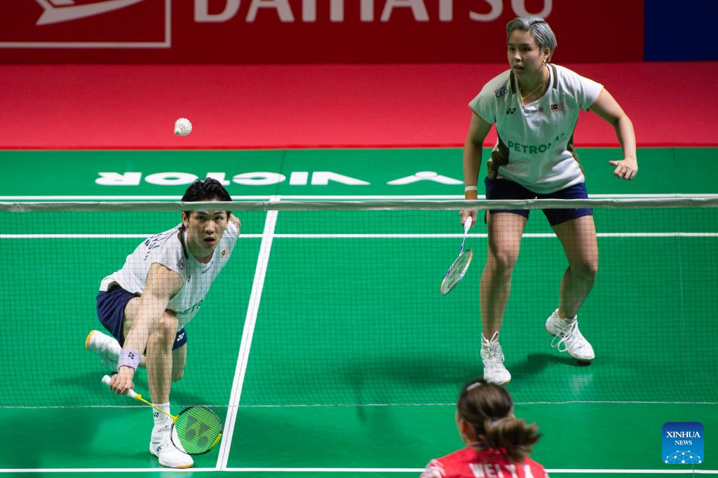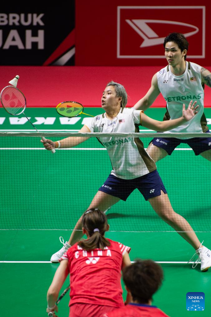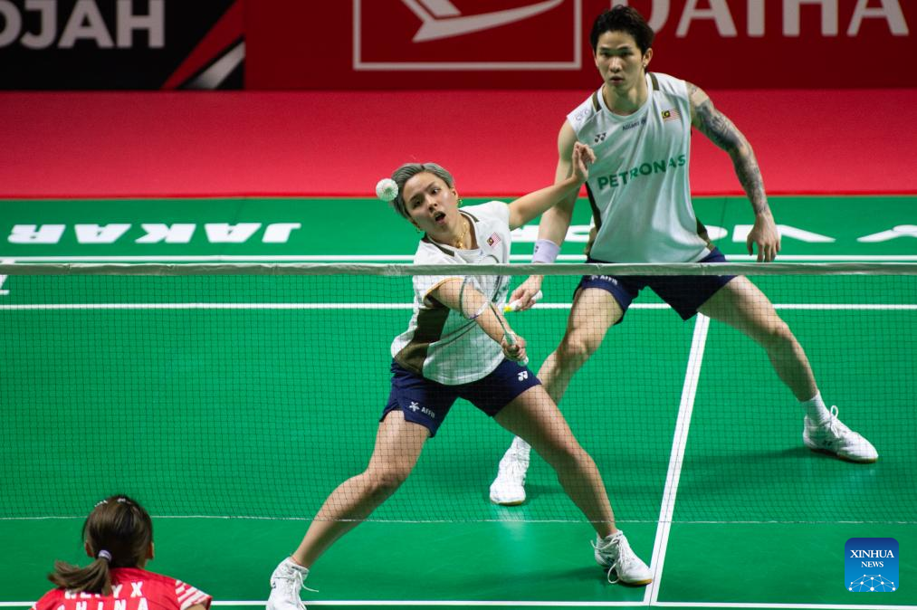 Chen Tang Jie (1st R)/Toh Ee Wei (2nd R) of Malaysia compete during the mixed doubles semifinal match against Jiang Zhenbang/Wei Yaxin of China at the Indonesia Masters 2026 badminton tournament in Jakarta, Indonesia, Jan. 24, 2026. (Xinhua/Veri Sanovri)